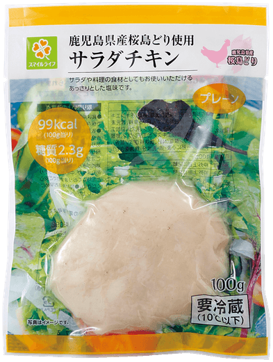”健康的”なイメージとさまざまな料理に使用できる利便性から人気のサラダチキン。スマイルライフのサラダチキンはこだわりの”鹿児島県産桜島どり”を使用しており、飽きずにお召し上がりいただけるよう3種類のフレーバーをご用意しております。