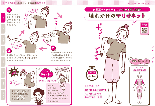 【2】イラストで分かりやすい!! また、各エクササイズには、お手本動画を見られるQRコード付き!