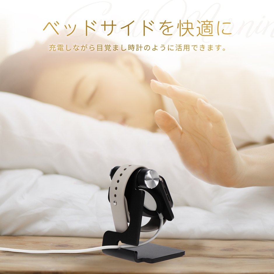 ・寝ている間に充電しながらApple Watchをスタンドに置くことができるので、目覚まし時計として使うこともできます。