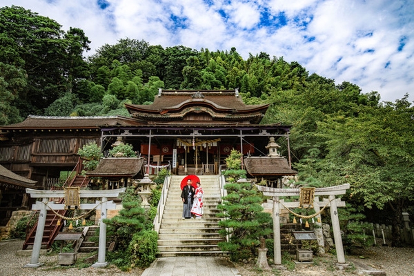 日本遺産に認定されている、日本最古の神社「いざなぎ神宮」での和装撮影、花畑や海辺での洋装、私服撮影など、淡路島の美しい自然を存分に満喫いただけます。