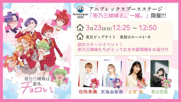 TVアニメ『帝乃三姉妹は案外、チョロい。』初のステージイベントを、AnimeJapan2025で開催!