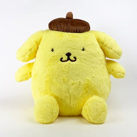 次に、ポムポムプリンのぬいぐるみをご紹介します。目に優しいイエローのボディにカラメル色の帽子がとっても可愛いポムポムプリン。家に帰ってきてお部屋にいたら、真っ先に抱き締めたくなりそうですよね♪サイズは、45×47×45cmです。