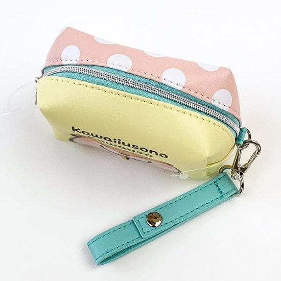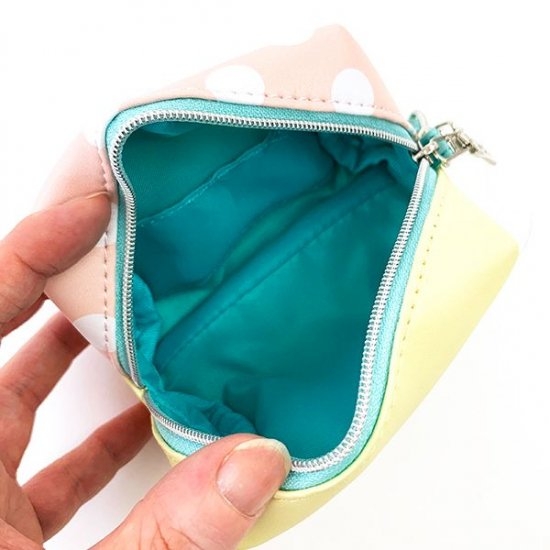 うしろはサーモンピンクのドットデザイン。サイズは10cm×8cm、お出かけ用の小さめバッグとも相性抜群です♪