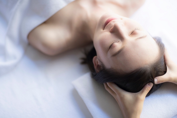 就寝前の約60分間は、プラン限定「氷瀑スパ」で、冷えた体を温める時間です。エステティシャンのカウンセリングから始まるスパトリートメントでは、寒さで縮こまった背中や肩を、氷瀑をイメージした真っ白な発熱性のパックでほぐし、オイルトリートメントで優しく癒します。初日の疲れをほぐし、翌日のアクティビティも全力で楽しめます。