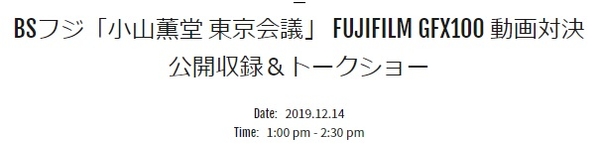 BSフジ「小山薫堂 東京会議」 FUJIFILM GFX100 動画対決 公開収録&トークショー