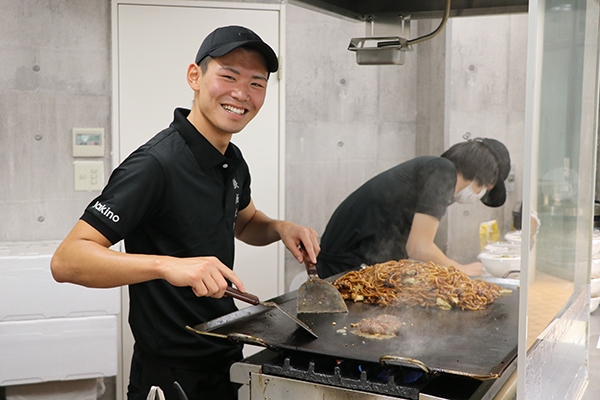五感で楽しんでもらうため、鉄板を使ったライブパフォーマンスを楽しめるお店にすることに加え、学内の他店や大学周辺地域との経営的な交流を通じて、本学や市川市のPRに貢献することもめざします。