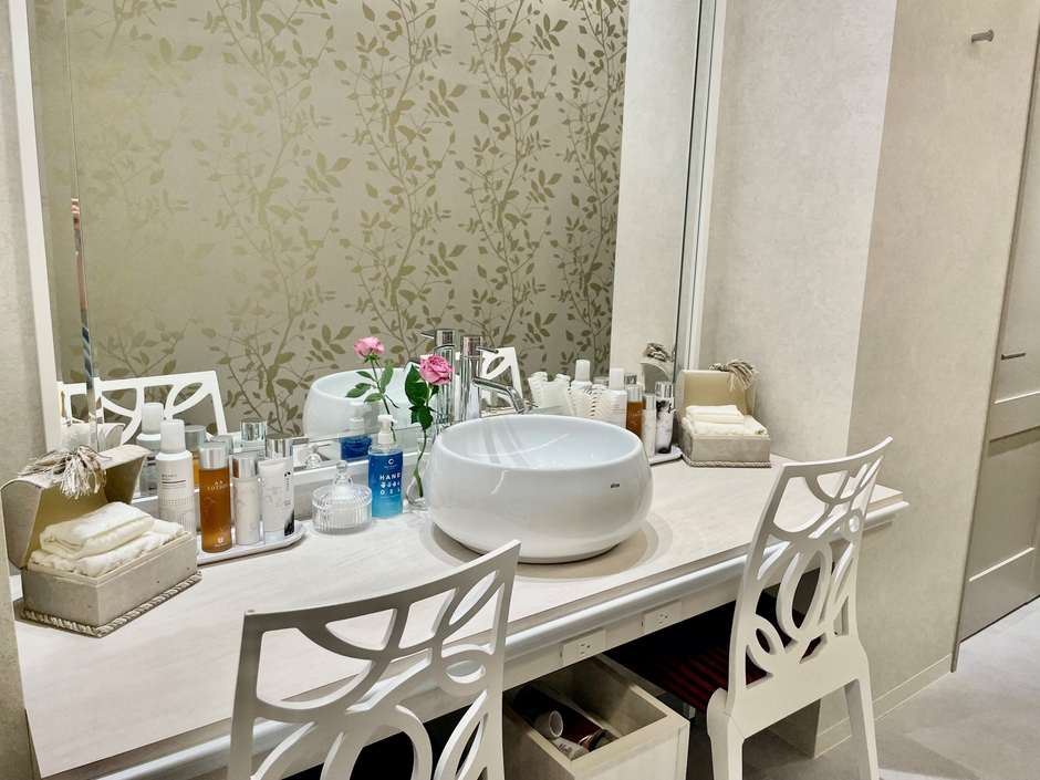 ミス・パリのサロンのテーマは“可憐で気品あふれる空間”。ホワイトカラーをベースに、 落ち着いた色調の組み合わせで、大人のサロンを演出しました。