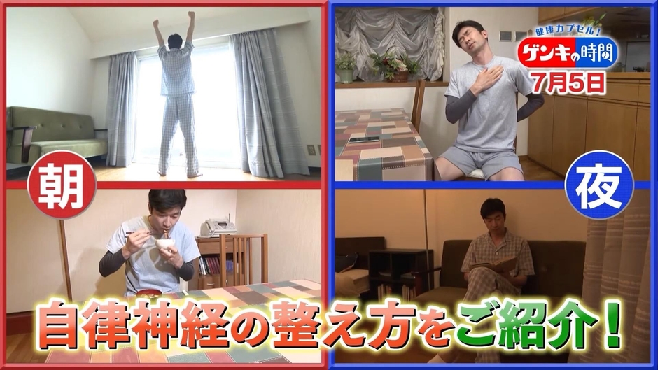 この夏は要注意!頭痛、だるさ、不眠…『さぼり神経』が原因かも?先生オススメ!さぼり神経を鍛え直す方法もご紹介!7月5日(日)あさ7:00放送『健康カプセル!ゲンキの時間』