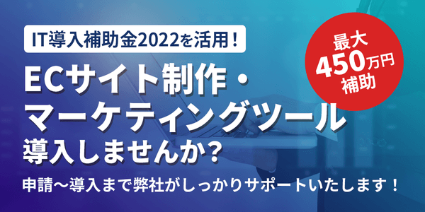 弊社では、通常枠に該当するマーケティングツールとデジタル化基盤導入枠に該当するECサイト制作をサポートいたします。