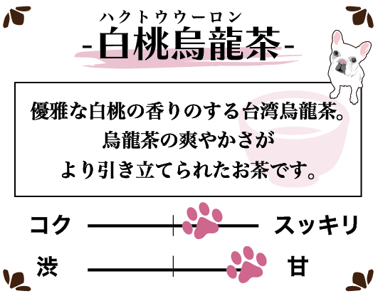 烏龍茶のコクがさわやかな白桃の香りに引き立てられ、より一層美味しくいただけます。