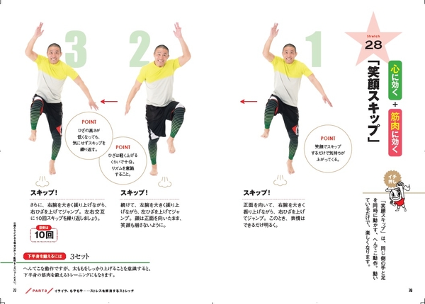 「笑顔スキップ」は、嫌なことが頭から離れなくてイライラしているときにおすすめです。へんてこな動きをすることで脳をだまし、元気度がアップします。