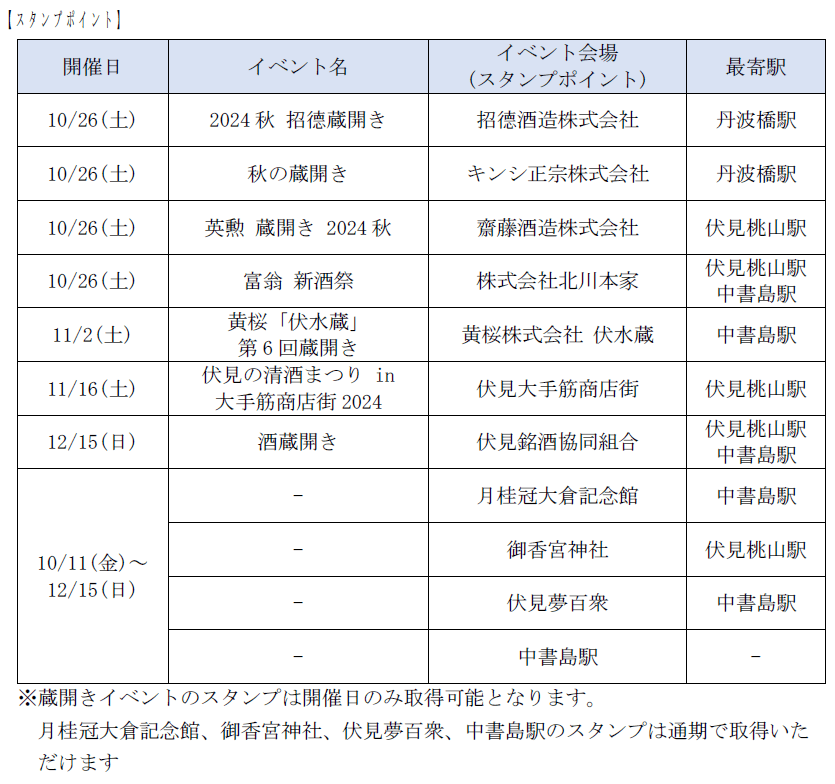 本年は、2024年10月11日(金)より酒蔵開きイベントなど日本酒に関するイベントやスポットをめぐるデジタルスタンプラリーを実施するほか、京阪グループのイメージキャラクターであるおけいはんを起用した「伏見の時を継ぐ」キャンペーンを展開します。そのほかにも、秋から冬にかけて様々なイベントを企画し、実際にお客さまに伏見のまちへ足をお運びいただき、日本酒に親しんでいただける機会を醸成してまいります。