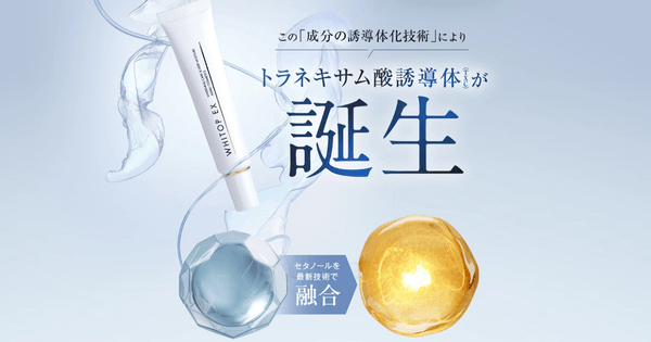「WHITOP EX」の主要成分であるトラネキサム酸誘導体の専門的な特徴については、図解やイラストを用いた視覚的なアプローチで表現。難解な情報でもスムーズに理解できるように構成されており、購入意欲を高める工夫が随所に施されています。