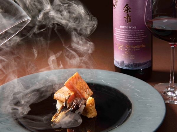 余市川のそばにある余市ワイナリーの樽熟ツヴァイゲルトレーベは、ブドウ本来の香りを殺さない古樽で長期熟成させた赤ワインです。じっくり熟成させることにより、味わいや香りに独特の風格が生まれます。スモークと樽の熟成の香りがよく合う組み合わせです。