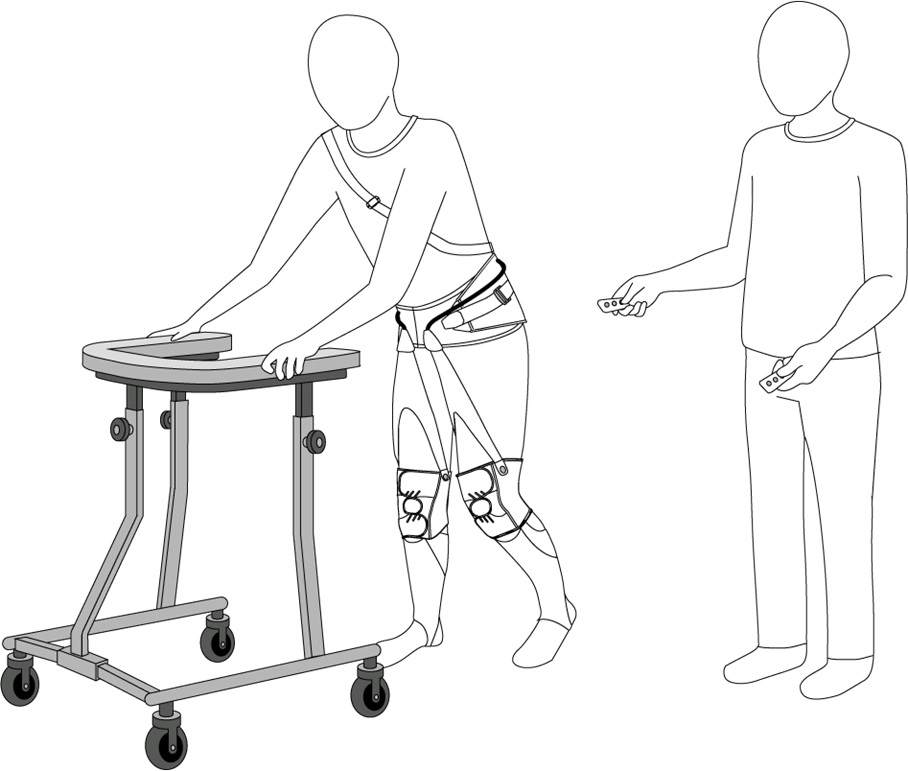 対象者の歩行に応じたタイミングで介護従事者が無線スイッチをON/OFF