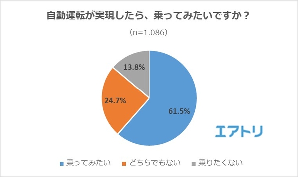 61.5%もの人が「乗ってみたい」と回答した一方で、「どちらでもない」が24.7%、「乗りたくない」も13.8%と一定数存在しました。