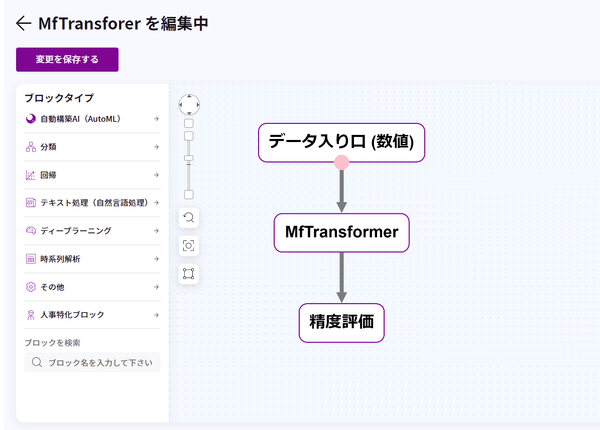 AIの設計図であるレシピは、MfTransformerのブロックを繋ぐだけです。