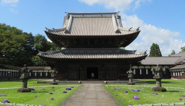 造営は正保年間から利長公の五十回忌の寛文三年(1663)までの約二十年の歳月を要しました。当時、寺域は三万六千坪、周囲に壕をめぐらし、まさに城郭の姿を想わせるものがあったそうです。平成9年12月3日、山門、仏殿、法堂が国宝に指定され、総門、禅堂、大庫裏、回廊、大茶堂が国の重要文化財に指定されました。江戸初期の禅宗寺院建築として高く評価されているお寺です。