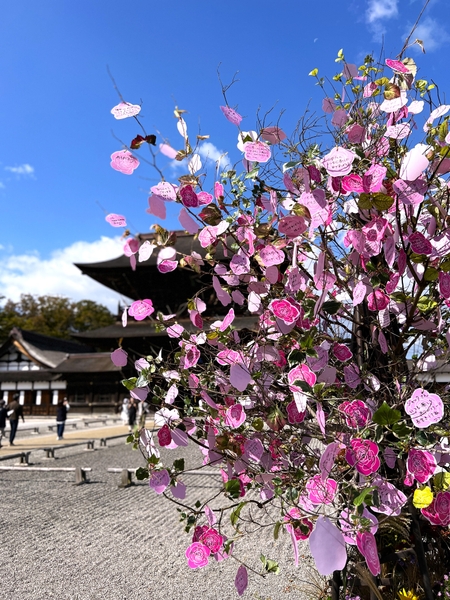 『花心論2024』では、高岡にゆかりのある大伴家持が詠んだ季節12か月の歌をアーティフィシャルフラワーで表現したオブジェが高廊下に、仏殿には秋の歌で詠まれた季節の花でデザインされた作品が飾られます。