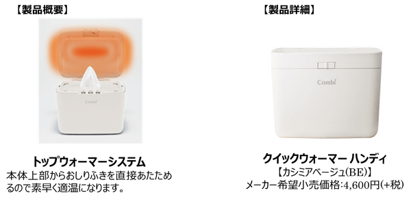 コンビ株式会社は、おしりふきを素早くあたためる「クイックウォーマー ハンディ」を2019年8月中旬より、全国のベビー用品専門店やGMSなどで販売いたします。