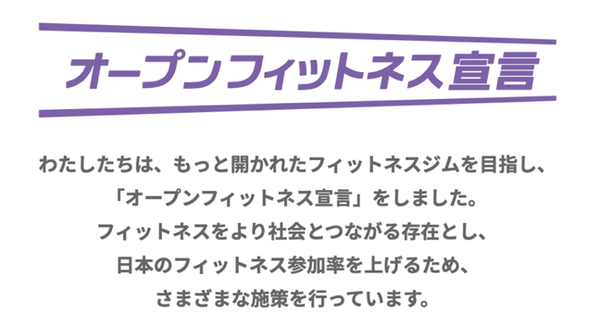 エニタイムフィットネスは、「ヘルシアプレイスをすべての人々へ!」のスローガンのもと、誰もが健康的に暮らせる心豊かな社会の実現を目指し、“オープンフィットネス宣言” として様々な地域・社会とつながる取り組みを行っています。