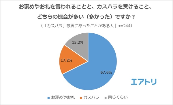 ―一方で、「カスハラ」と回答した人は17.2%、「同じくらい」は15.2%となりました。