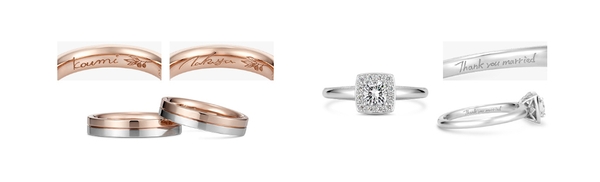 ケイ・ウノではこれまでにも、“海外赴任中の男性が、日本にいる奥さまへ直筆の刻印を入れたネックレスをプレゼント”、“結婚指輪に祖父母の直筆メッセージを刻印した”など、想いがこもった多くの事例があります。このような経験により、需要に対応する新サービスとして、オーダーメイド企業の特性と品質を活かし、指輪の内側に刻印する「フリーライティングサイン刻印」サービスの提供を始めます。