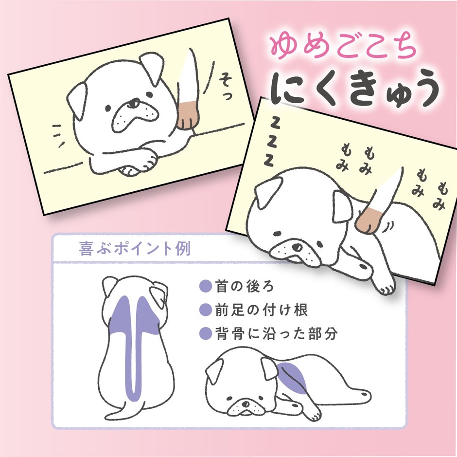 1日頑張ったワンちゃんに肉球で揉んで、コリをほぐしてあげましょう。