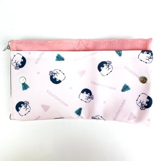 先程までのピンクとは一風変わって優しい桃色カラーのコウペンちゃんマスクポーチ♡汚れに強いラミネート加工が施されています♪