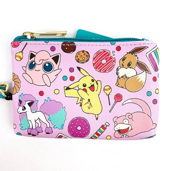 おつぎもリール付きパスケース!ポケモンとカラフルなスイーツが描かれています♪裏にはお眠りカビゴンが…!