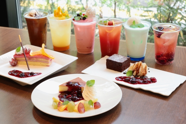 どなたでも利用可能なカフェタイムには、フルーツやアイスクリームなどがトッピングされた6色の冷たいモクテルと、3種類のケーキの中から好みのものを選べ、子供から大人まで幅広い年齢層が楽しめる「ハッピーカラー&スイーツデュオ」を1,500円で販売します。