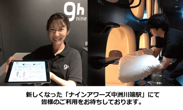 ・公式HP: https://ninehours.co.jp/nakasukawabata-station