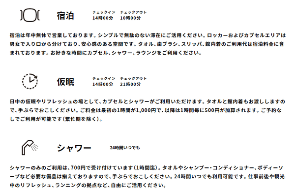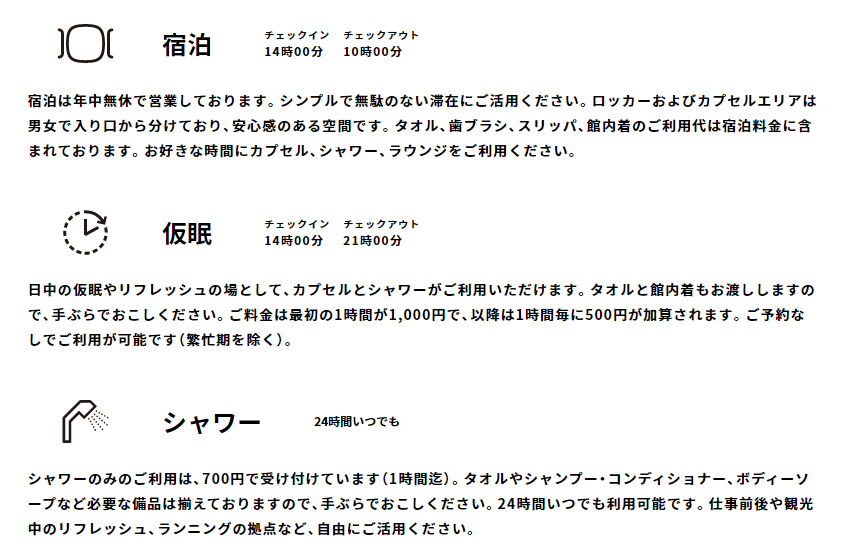『ナインアワーズ中洲川端駅』は福岡市地下鉄「中洲川端駅」に直結する商業施設「博多リバレインモール」地下1階にあるカプセルホテルです。「博多駅」まで2駅、「福岡空港駅」まで4駅と、ビジネス及び観光において大変利便性の高い場所で、清潔で快適な空間とスマートなサービスをご提供いたします。