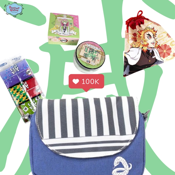 伊黒小芭内をイメージしたデザインの、ミニショルダーバッグです。ネイビーやグレーなどのベーシックなカラーのバッグなので、大人っぽくも使える一品♪かぶせ部分もストライプ柄で、カジュアルテイストなデザインです。