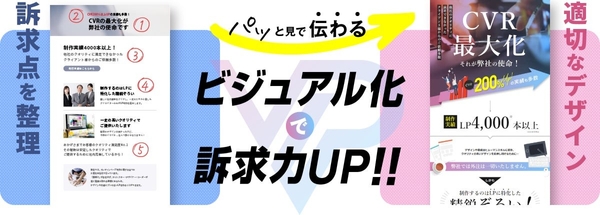 その場合は、ユーザーに「伝わる」「欲しくさせる」「利用してみたくなる」ページに変更することが効果的で、弊社では、その様なページを1ページから改善できるビジュアルデザイン制作のサービスを開始しました。