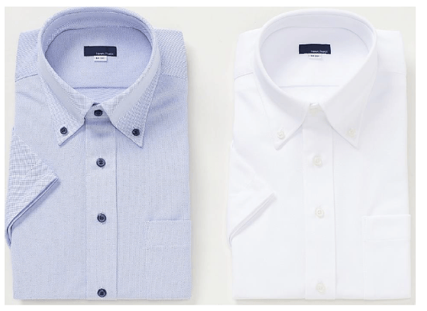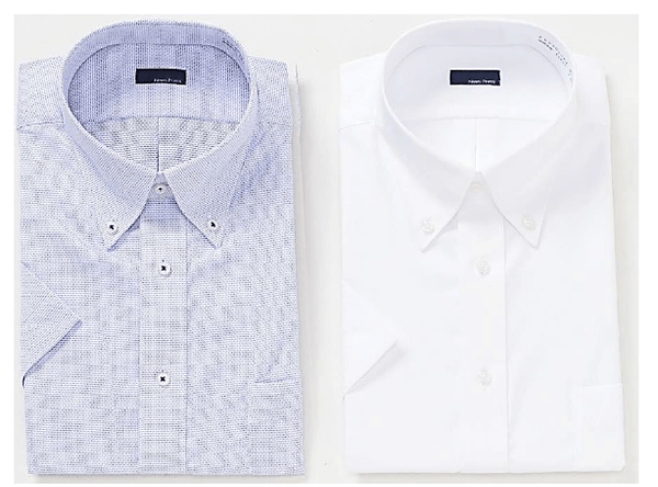 「超形態安定加工」を施し、洗濯後にアイロンをかける必要がなく毎日のお手入れが簡単な「ノーアイロン」のシャツです。「綿100%ノーアイロンワイシャツ」は綿100%のやわらかい肌触りで、防シワ性の高い特殊な生地を使用しているため、綿100%なのに洗濯後のアイロンが必要ありません。「ニットノーアイロンワイシャツ」はポリエステル100%のスポーツニット素材で、吸水速乾・ストレッチ性に優れ、ポロシャツ感覚で着られるのでテレワークにおすすめです。