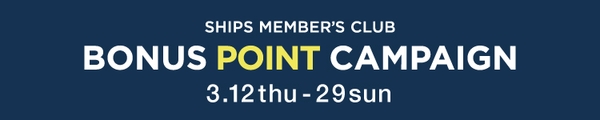 さらに、3月12日(木)〜29(日)の期間、「SHIPS Member's Club BONUS POINT CAMPAIGN」を開催いたします。 期間中にお買い上げいただくと、SHIPSメンバーズクラブのポイントが通常の3倍になります。 当日入会されたお客様も対象です。