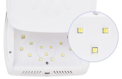 さらにLEDチップには樹脂を塗布しているので目に優しい仕様です。シンプルだけど丸みを帯びたフォルムがおしゃれな、見た目も操作性も抜群のUV/LEDジェルネイルライトです。