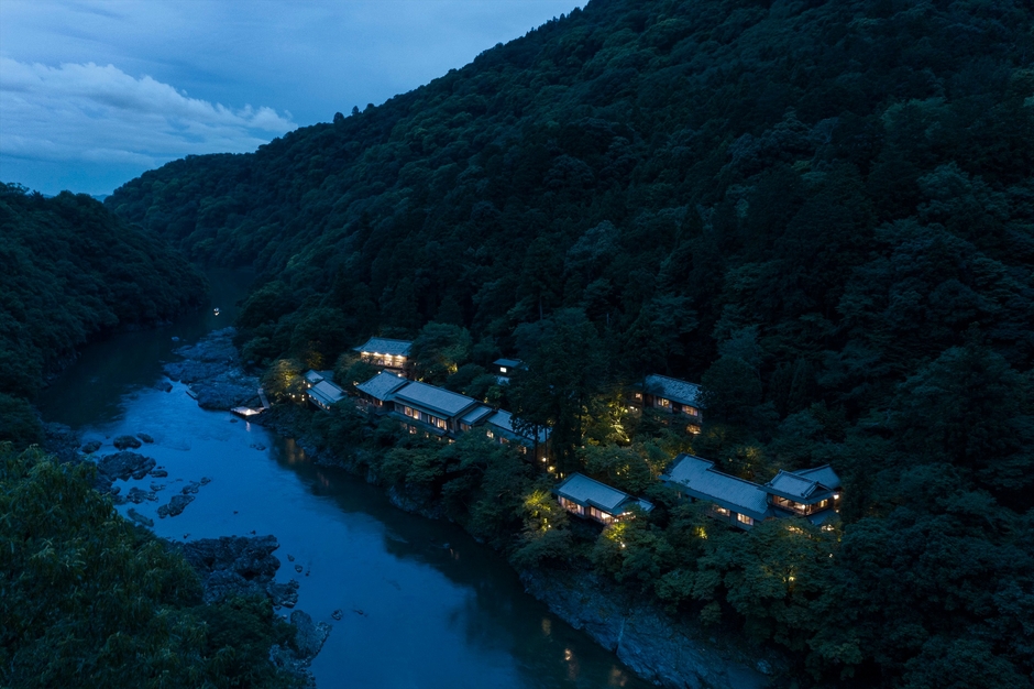 平安貴族が別邸を構えた京都府・嵐山。渡月橋から船に乗り、大堰川を遡ると現れる水辺の私邸。京都に息づく日本の伝統技法を感じる客室、五味を自在に表現する日本料理、四季の美しい景観と静けさの非日常の世界を楽しめるリゾートです。