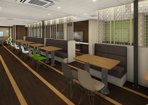 コンパクトなシングルルームは、プライベートな空間でお一人様の船旅もゆっくりとお過ごしいただけます。ドミトリールームは、各ベッドに間仕切りのカーテン付き。また、2段ベッドの登り降りをしやすくする階段を設置しました。ツーリストルームは、各席に間仕切りを設置し、クッションマットレスを敷いた広間タイプの客室。室内の段差を無くし、手摺を設置するなど、バリアフリーにも対応しています。