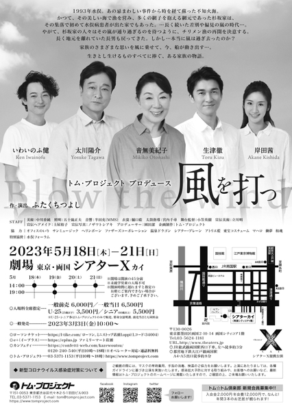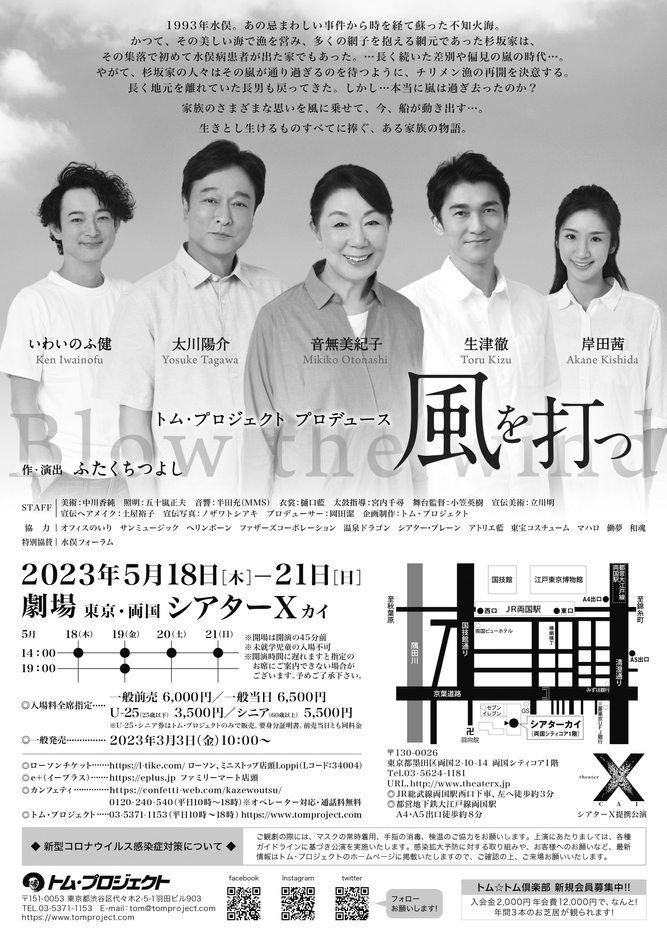 トム・プロジェクト企画制作、『風を打つ』が2023年5月18日 (木) ~2023年5月21日 (日)に東京・両国 シアターΧ(東京都墨田区両国2-10-14 両国シティコア内)にて上演されます。その後、5月26日(金)~6月22日(木)に長野・近畿地方の合計21箇所で演劇鑑賞会公演を実施致します。