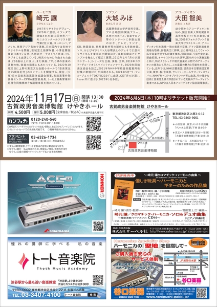 『ファンタスティック・トリオⅡ~HARONICA・SOPRANO&ACCORDION』チケット販売開始 古賀政男の遺志を引き継ぎ誕生した音楽博物館で披露されるこころあたたまるサウンド