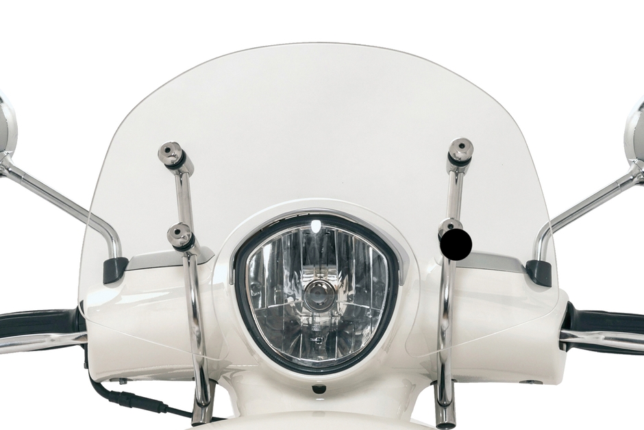 クロームメッキのステーにマウントされたショートスクリーンが、ライダーの胸元にあたる風や雨を防ぐとともに品質感を高めます。小ぶりでシンプルな形状が、ジャンゴのネオレトロなスタイリングを引き立てます。