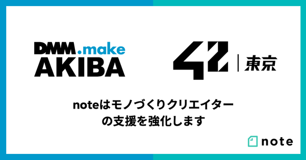 noteはモノづくりクリエイターの支援を強化します。モノづくりスタートアップの支援拠点DMM.make AKIBA、 学費無料のエンジニア養成機関42 Tokyo、それぞれとコラボ開始