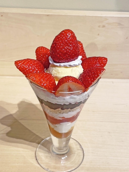 万博開幕日にワークショップで提供したオリジナルパフェをももてなし家風にアレンジ。