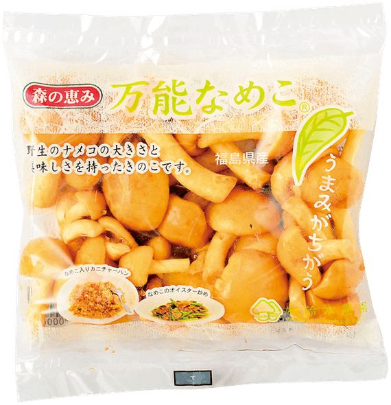 野菜コーナーで販売している福島県産鈴木農園の「万能なめこ」を使用。栄養豊富な培地で栽培され、大粒で香りが良くて旨味が強く、ぬめりが少ないのが特徴。
