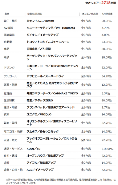 2020年1月度 業類別CM好感度No.1銘柄