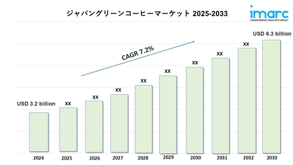 日本のグリーンコーヒーの市場規模は、2024年に32億米ドルに達しました。今後、IMARCグループは、2025年から2033年の間に7.2%のCAGRを示し、2033年までに63億米ドルに達すると予想しています。