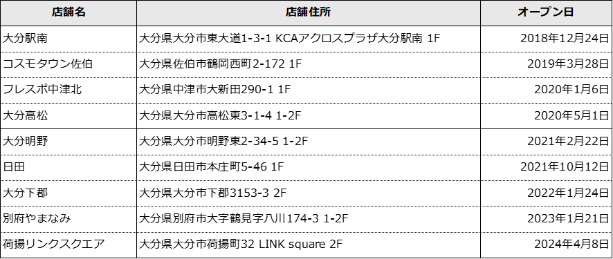 ●大分県内のエニタイムフィットネス店舗 ※オープン日順