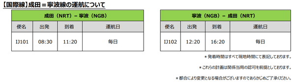 スプリング・ジャパン 国際線冬ダイヤ成田=寧波線販売開始について